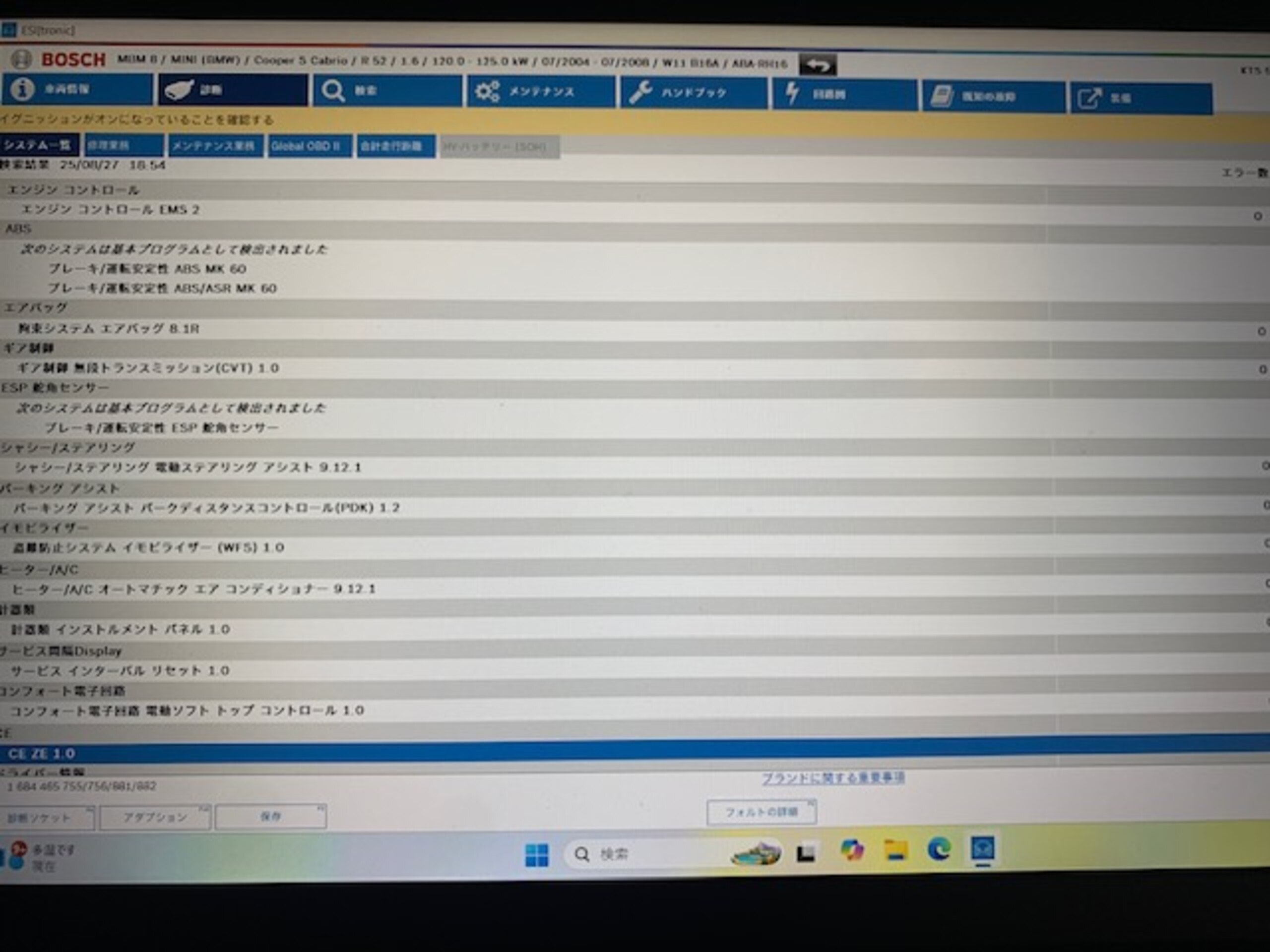消耗品点検・交換と共に、入庫時・納車前に計2回BOSCH車両診断機にて
